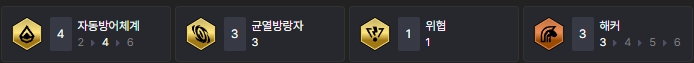 덱을 완성시키면 챙길 수 있는 특성은 자동방어체계(6), 균열방랑자(3), 위협(1), 해커(3)입니다.