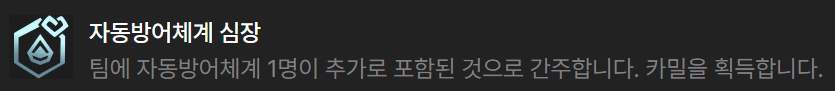 그 외에는 전투형 증강체에서 체력 회복과 관련된 증강체나 원형의 원칙낫, 보석 연꽃을 추천드리며, 르블랑 아이템을 빨리 만들어주기 위한 아이템 관련 증강체도 갈만 합니다. 그 외에는 자동방어체계 관련 증강체나 해커 관련 증강체를 추천드립니다.