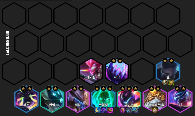 덱이 대부분 3코스트 이상 챔피언들로 이루어져 있기 때문에 초반에는 싸움꾼 빌드업을 타면서 갑니다. 쉔과 르블랑이 나오면 그때부터 그 둘을 활용하여 진행하면 됩니다.