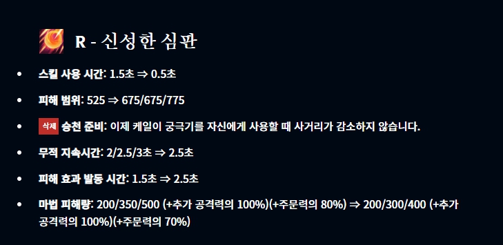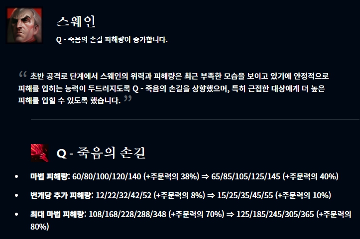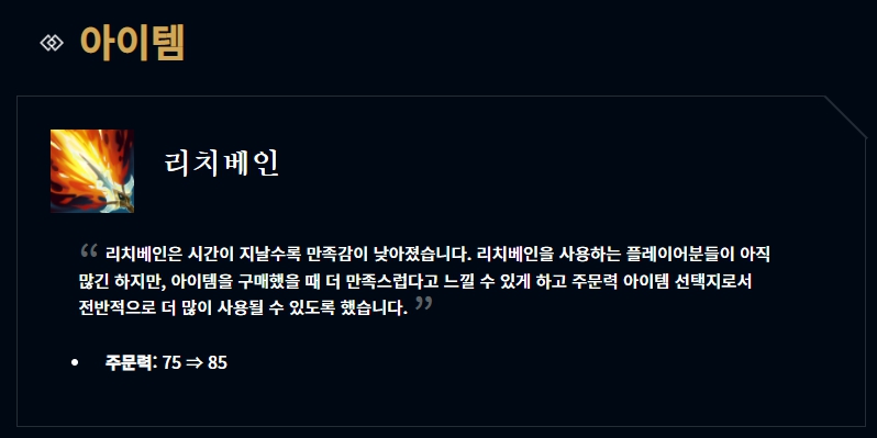리치베인의 기본 주문력이 10 버프되었습니다.
