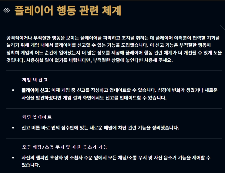 감정표현을 더 풍부하게 사용할 수 있게 되었고, 게임 내 신고 가능, 차단 업데이트, 모든 채팅/소통 무시 및 자신 음소거 기능이 추가되었습니다.