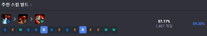 1레벨에는 Q스킬, 2레벨에는 E스킬, 3레벨에는 W스킬을 찍어준 뒤 4레벨부터는 R-Q-E-W 순서로 스킬을 마스터해주시면 됩니다.