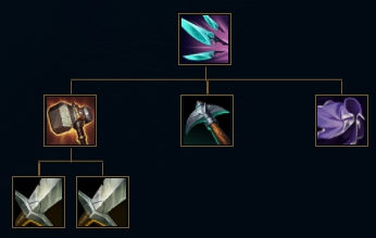 콜필드의 전투 망치(1100), 곡괭이(875), 민첩성의 망토(600), 825골드를 조합하여 만들 수 있습니다.