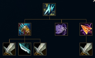 절정의 화살(1300), 민첩성의 망토(600), 키르히아이스의 파편(700), 400골드로 조합할 수 있습니다.