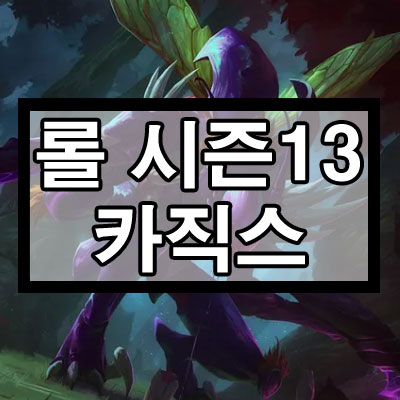 이렇게 이번 시간에는 롤 시즌13 정글 카직스의 소환사 주문과 스킬 빌드, 룬, 템트리, 카운터 챔피언까지 알아보았습니다. 카직스는 13.10 패치 이후 아이템 변화 및 다른 정글러들의 밸런스 패치로 인해 압도적인 정글 OP 챔피언인 상황입니다. 그러면 이번 포스팅은 여기서 마무리하도록 하고 다음번에는 또 다른 글로 다시 찾아오도록 하겠습니다. :)