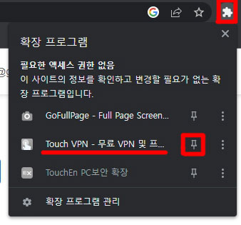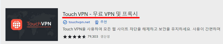 저는 Touch VPN이라는 무료 VPN을 설치하였습니다.