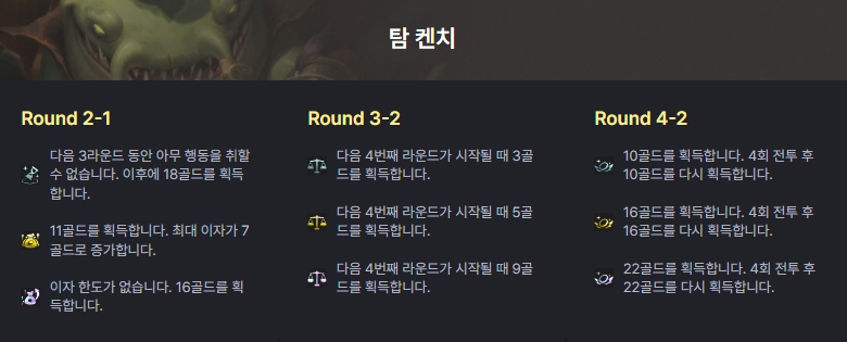리롤덱이기 때문에 골드 관련 혹은 상점 관련 전설인 탐 켄치 또는 리신을 추천합니다.