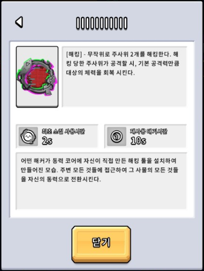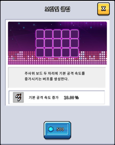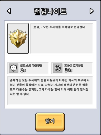 밸런스 부분은 달 주사위 하나만 조금 상향되었는데요, 내용을 살펴보면 클래스 업 공격속도 증가량이 0.5에서 1로 늘어났고, 파워 업 공격속도 증가량이 1에서 2로 늘어났습니다. 지난번 패치 전까지 너무 높은 효율을 보여줬었는지 반토막을 내버렸는데 반대로 너무 많이 사용을 안하게 되니 조금 상향한 모습을 보여줍니다.