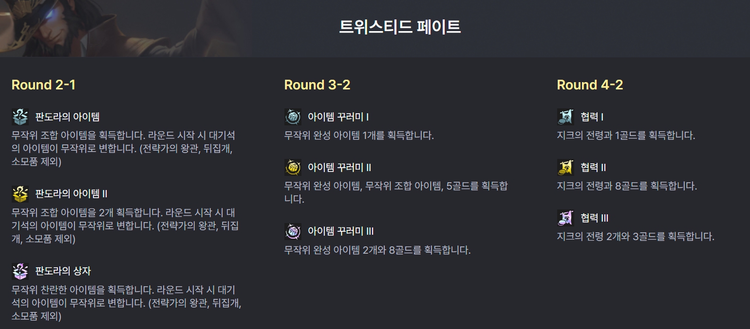 추천드리는 차원문은 위와 같습니다. 초반 골드 이자를 빨리 모아 더 빠르게 50원 이자를 받으며 리롤을 칠 수 있는 골드 관련 차원문, 아이템을 획득하여 더 빨리 템을 맞춰줄 수 있는 가능성이 있는 쓰레쉬의 성소, 7레벨에 사수(4)를 받을 수 있는 신의 버드나무 숲입니다. 리신 전설을 고른 경우 피해야 할 차원문은 첫 증강체가 프리즘 증강체가 나오는 것입니다. 프리즘 증강체에서 골드 티켓(구 황금 티켓)을 뽑는다면 훨씬 덱 완성이 쉬워지지만 리신 전설 프리즘 증강체는 효율이 굉장히 좋지 않습니다.