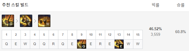 뽀삐는 1레벨에는 Q를 찍고 cs파밍을 위주로 라인전을 해주시면 되고, 2레벨에는 E, 3레벨에는 W를 찍어준 뒤 3레벨부터 적당히 딜교를 해주면 되겠습니다. 4레벨 이후부터는 R-Q-E-W 순서로 스킬을 마스터해주시면 됩니다.
