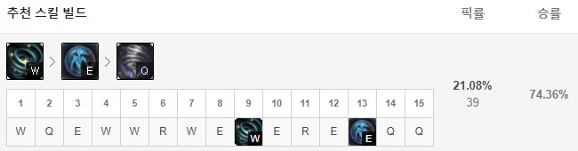 보통 1레벨에 W를 찍고 W평으로 상대 챔피언에게 딜교를 해줍니다. 2레벨에는 Q를 찍어서 마찬가지로 잘 맞줘주시면 되고, 3레벨에는 E를 찍어 딜교할때 활용하여 딜교에서 이득을 쌓아가시면 됩니다. 4레벨부터는 R-W-E-Q 순서로 스킬을 먼저 마스터해주시면 됩니다.