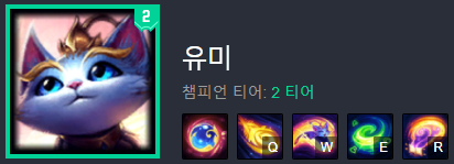 유미는 다른 유틸폿인 나미나 룰루, 소나, 소라카와 같은 템트리를 올려주시면 됩니다. 주문력에 따라서 스킬의 데미지는 물론, 힐량도 늘어나기 때문에, 그리고 유미를 몇 판 해보면 알겠지만 마나가 많이 부족한 챔피언이기 때문에 첫 코어 아이템으로는 아테나의 부정한 성배를 올려줍니다. 두 번째 코어템은 불타는 향로 아이템을, 세 번째 코어템은 상황을 보고 무난하면 구원, 상대팀 CC기가 많으면 미카엘의 도가니, 우리팀에 CC기가 없어서 도망가는 적을 잡지 못하는 경우가 많으면 슈렐리아를 구매해주시면 되겠습니다.