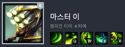 마스터이의 스킬은 1레벨에는 Q를 찍고, 2레벨에는 E, 그리고 3레벨에는 W를 찍어주고 그 이후부터는 R-Q-E-W 순서로 마스터를 해주면 됩니다.