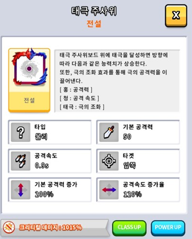 태극 주사위는 가로로 열을 맞출 경우 공격속도 증가 효과를 적용받고, 세로로 맞출 경우 공격력이 증가합니다. 가로세로 모두 맞추는 경우에는 공격력이 대폭 증가합니다. 태극 주사위의 가로, 세로, 가로세로를 맞추는 것에 대한 이해가 헷갈리시는 분들은 아래 쉽게 설명된 이미지를 참고해주세요.