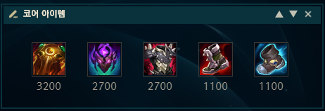 코어 아이템으로는 라인 클리어, 스킬 가속, 불사르기 등을 갖춘 탱커 아이템이면서도 공격에도 도움이 되는 태양불꽃 방패를 첫 코어템으로 올려주시면 되고, 두 번째 코어템으로는 상대 AP가 강하면 심연의 가면을, 상대 AD가 강하면 가시 갑옷을 올려주는게 좋습니다. 마찬가지로 신발도 AP가 강하냐, AD가 강하냐에 따라 고르시면 되겠습니다.