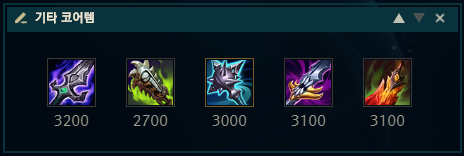 기타 코어 아이템으로 갈만한 것들은 몰락한 왕의 검, 화공 펑크 사슬검, 은빛 여명, 멜모셔스의 아귀, 죽음의 무도 아이템입니다. 몰락한 왕의 검의 현체 체력 비례 피해 및 흡혈 효과가 이즈리얼의 Q에 적용되기 때문에 잘 어울리죠. 화공 펑크 사슬검의 경우 상대팀에 블라디미르, 소라카, 문도 박사, 워윅 등의 체력을 채우는 챔피언이 있는 경우 가주면 고통스러운 상처 효과때문에 좋은 효율을 보입니다. 상대팀 AP가 굉장히 잘 컸으면 맬모셔스의 아귀, CC기가 굉장히 강력하면 은빛 여명을 올려주시고 상대의 딜링이 너무 강력하다 싶으면 죽음의 무도를 띄워주는 것도 좋은 방법이죠.