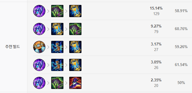 OP.GG기준 추천 빌드를 보면 처음에는 만년 서리 빌드가 있었지만 현재는 사라진 것을 확인할 수 있습니다. 그만큼 하자가 있는 아이템이라는 것이겠죠? 그 외에도 루덴의 메아리가 스킬이 터지면 잠시 이동속도가 빠르게 증가하는 효과가 있는데 그게 너무 좋기 때문이라는 의견도 있습니다. 저는 개인적으로 만년 서리의 하자와 루덴의 장점 이 두개가 겹쳐서 많은 AP딜러들이 만년 서리를 포기하게 된게 아닐까 싶네요.