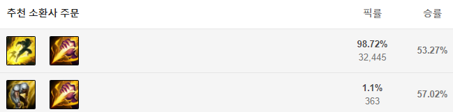 룬의 메아리 정글템을 첫 코어템으로 가고 그 다음에는 모렐로노미콘을 가주는게 정석이며 중간에 암흑의 인장을 구매하여 스택을 10스택 쌓았을 경우 최대한 죽지 않는 플레이 위주로 하시면서 메자이로 갈아타주셔도 됩니다.