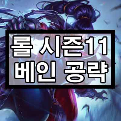 이렇게 이번 시간에는 롤 시즌11 프리시즌 베인의 룬, 템트리를 알아보는 시간을 가져봤습니다. 위에서도 말했다시피 예전에는 대회에서도 굉장히 활약하고, 후반으로 가면 갈수록 강해지는데다가 탱커도 손쉽게 잡는 이미지때문에 인기가 많았던 챔피언입니다. 허나 궁극기를 사용한 뒤의 컨트롤이 굉장히 어려운 챔피언이라 못하면 베인충 소리를 듣는 챔피언이기도 하죠. 랭크 게임에서 이용하실 분들은 참고하시길 바라고, 이번 포스팅은 여기서 마무리하도록 하겠습니다. 다음번에는 또 다른 포스팅으로 다시 찾아오도록 하겠습니다. :)