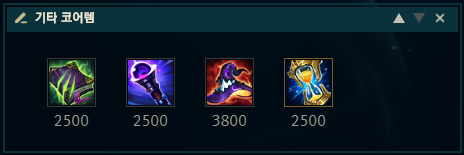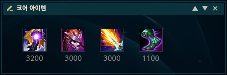 기타 코어 아이템으로는 모렐로노미콘, 공허의 지팡이, 라바돈의 죽음 모자, 존야의 모래시계가 있습니다. 상대 챔피언들 중 회복, 흡혈 능력이 뛰어난 챔피언이 있을때는 모렐로노미콘을, 마법 저항력 아이템으로 떡칠한 탱커 챔피언이 있는 경우 공허의 지팡이를, 그냥 깡 주문력을 올려서 딜링을 올리고 싶으면 라바돈의 죽음 모자를, 자주 물리거나 짤린다 싶으면 존야의 모래시계 아이템을 올려주면 됩니다. 상황에 맞게 적절히 아이템을 선택하시면 되겠죠?