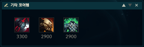 기타 코어 아이템으로는 칠흑의 양날 도끼, 망자의 갑옷, 정령의 형상 아이템이 있습니다. 사실 위의 핵심 코어 아이템들만 나와도 딜링은 어느정도 충분하지만서도 더 딜링이 필요할 때는 칠흑의 양날 도끼를, 상대 AD가 잘 컸으면 망자의 갑옷을, AP가 잘 컸으면 정령의 형상을 올려주시면 되겠습니다.