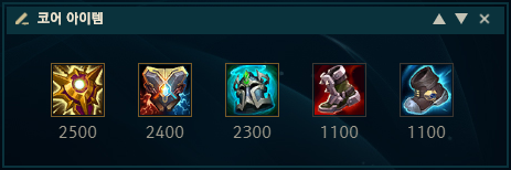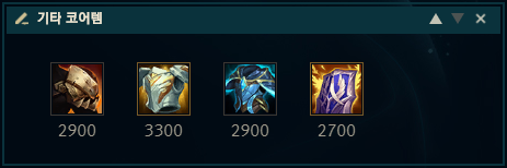 처음 시작 아이템은 고대유물 방패와 포션 두 개, 제어 와드로 시작하는 것이 가장 무난합니다. 근접 서포터이기 때문이고 만약 상대 바텀이 굉장히 견제가 심한 조합인 경우 강철 어깨 보호대로 시작을 하는 것도 괜찮습니다.