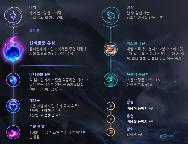 반면 서폿 제라스의 경우 메인 룬은 미드 제라스와 마찬가지이지만 보조 룬에서 영감을 들어 비스킷과 통찰력을 들어주는게 다릅니다. 바텀의 경우 2:2 교전이라 라인 유지력이 상당히 중요한데 비스킷은 이 라인 유지를 늘려주는 역할을 할 수 있죠.