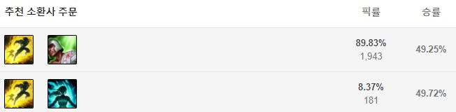 원딜 대표 스펠인 점멸과 회복을 들어주는게 기본이며 가끔 상대방 팀에 너무 CC기가 많고, 본인이 정화 스펠을 잘 이용할 수 있으면 회복 스펠 대신 정화 스펠을 들어주는것도 좋은 선택입니다.