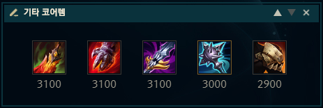 정글러답게 맞다이를 강화시켜주는 정글 아이템인 잉걸볼 칼을 올리는 경우가 많습니다. 따라서 잉걸볼 칼과 충전형 물약, 와드 토템으로 게임을 시작해주시면 되겠습니다.