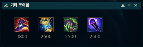 신드라의 기타 코어 아이템으로는 주문력이 더 필요하다면 라바돈의 죽음 모자, 제드나 피즈같은 적이 상대인 경우, 물리는 일이 잦은 경우에 존야의 모래시계를 올려주면 됩니다. 상태 조합에 피흡, 회복 능력이 강한 챔피언들이 많으면 모렐로노미콘을, 마법 저항력 아이템을 둘러싼 경우는 공허의 지팡이를 올려주시면 되구요.