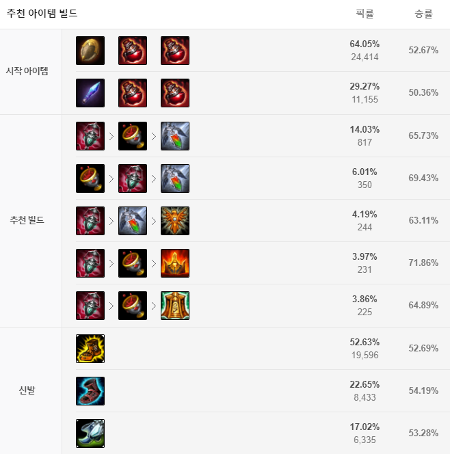 아이템의 경우에는 최근에는 주문도륙의 검이 아니라 고대유물 방패를 올려 초반 체력관리에 힘을 쓰는 경우가 많이 있는데요, 서폿 템을 띄운 후에는 불타는 향로 아이템을 올려주고, 그 이후 아테나의 부정한 성배 아이템을 띄워주는게 좋습니다.