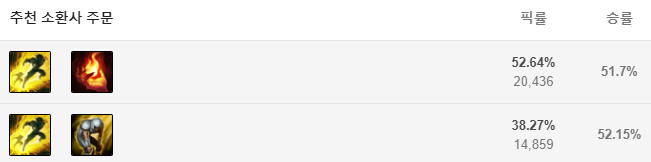 룰루의 스펠은 점멸 + 점화 또는 점멸 + 탈진으로 나뉘는데요, 상대방 미드 챔피언들이 제드, 탈론, 야스오같이 순식간에 붙어서 폭딜을 넣는 챔피언이라면 탈진도 꽤나 괜찮은 선택이고, 상대방 미드가 그런 챔피언들이 아닌 경우에는 점화를 들어서 라인전에 힘을 실어주는게 더 좋습니다.