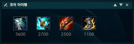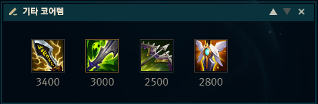 기타 코어 아이템으로는 무한의 대검, 헤르메스의 시미터, 필멸자의 운명, 수호천사가 있습니다. 그냥 딜링이 더 필요할 때 무한의 대검을 올려주시면 되고, 상대팀에 CC기가 많아서 자주 CC기를 맞는다면 헤르메스의 시미터, 소라카나 나미, 유미, 블라디, 문도 박사 등의 체력 회복 및 흡혈 능력이 뛰어난 챔피언들이 많은 경우에는 필멸자의 운명을, 암살자가 많아서 자주 암살당한다면 수호천사를 추천드립니다. 상황을 보면서 상황에 맞는 아이템을 올려주시면 되겠습니다.