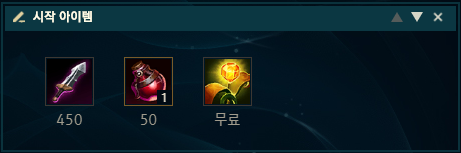 시작 아이템은 다른 평범한 원딜러들과 마찬가지로 견제, 맞딜, 피흡 등 모든 면에서 유리한 도란의 검으로 게임을 시작합니다. 케이틀린은 대부분의 경우 사거리를 이용해 라인전에서 우위를 점할 수 있기 때문에 그만큼 도란의 검 이외의 아이템이 사용되지 않죠.