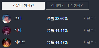 요즘엔 바텀 라인에 소나&럭스 조합이 너무 핫해서 계속 저렇게 카운터 챔피언에 보면 소나가 있는데 꼴보기 싫어지는 챔피언이네요.