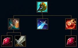 신성한 파괴자의 하위 아이템은 탐식의 망치, 광휘의 검, 점화석입니다. 탐식의 망치는 공격력 15와 체력 200을 증가시키며 챔피언에게 물리 피해를 입히면 6초동안 최대 체력의 2%만큼 체력을 회복하죠. 점화석의 경우는 체력 200에 스킬가속 10이라는 효과를 가지고 있구요. 또 광휘의 검은 스탯 옵션은 없지만 아이템 효과로 스킬 사용 후 기본 공격시 공격력에 100%에 해당하는 물리 피해를 추가로 입히죠. 이렇게 세 아이템과 추가 골드를 조합하여 신성한 파괴자 아이템을 구매할 수 있습니다.