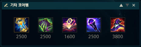 기타 코어 아이템으로는 존야의 모래시계, 메자이의 영혼 약탈자, 모렐로노미콘, 공허의 지팡이, 라바돈의 죽음모자 등이 있습니다. 니달리가 강력하긴 해도 물몸이기 때문에 CC기 하나를 잘못 맞으면 골로 갈 수 있는데, 그렇게 물렸을 경우 사용할 수 있는게 바로 존야의 모래시계입니다. 제드나 피즈, 탈론같은 한번 걸리면 순삭할 수 있는 챔피언이 많은 경우 올리면 좋습니다. 모렐로노미콘은 상대에 회복, 흡혈 능력이 강력할 때 올리면 되며, 메자이는 첫 번째 코어 아이템 전후로 암흑의 인장을 사놓고 스택이 높게 쌓인 경우 올리면 됩니다. 그 외 게임이 쉽게 이기고 있다면 라바돈의 죽음 모자를 구매하여 확실하게 딜링을 높이는 것도 좋고, 마법 저항력 아이템을 둘둘 둘렀을 경우 공허의 지팡이를 올리는게 좋겠죠?