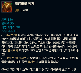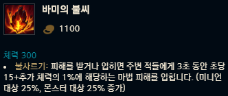 서리불꽃 건틀릿의 하위 아이템은 바미의 불씨, 마법무효화의 망토, 쇠사슬 조끼입니다. 가격을 다 합치면 총 3,200골드로 태양불꽃 방패와 똑같은 가격이죠. 하위 아이템인 바미의 불씨는 불사르기 효과를 가지고 있어서 라인전이나 정글링을 돌 때 더 손쉽게 미니언, 정글몹을 잡을 수 있게 된다는 장점이 있습니다.