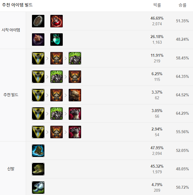 그 이후부터는 상황을 보고 AD가 쎄면 가시 갑옷을, 정령의 형상을 올렸는데도 불구하고 AP가 쎄면 그냥 피통을 좀 더 올려주는 망자의 갑옷을 추천드립니다.