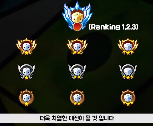 시즌제가 도입되었다고 해서 전적이 초기화되는 것은 아니며 업데이트 전 점수에 맞게끔 점수가 조정이 되어 클래스는 유지되고, 또 9천점을 넘었었던 사람은 그에 맞게 엠블렘과 주사위 원석, 다이아 등 보상이 주어집니다.