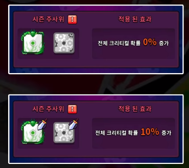 마지막으로 편의성 개편 및 시즌 주사위에 관한 내용입니다. 기존에는 주사위 덱을 설정할때 주사위 덱 따로, 필드를 따로 설정해야되서 덱을 바꾼 뒤 잘못된 필드를 들고가는 일이 흔했는데 이제 추가로 한꺼번에 설정할 수 있게 되었습니다. 또 시즌 주사위라고 매 시즌 두 가지 주사위가 시즌 주사위로 지정되며, 시즌 주사위를 덱에 넣었을 경우 특수 효과가 발동된다고 합니다.