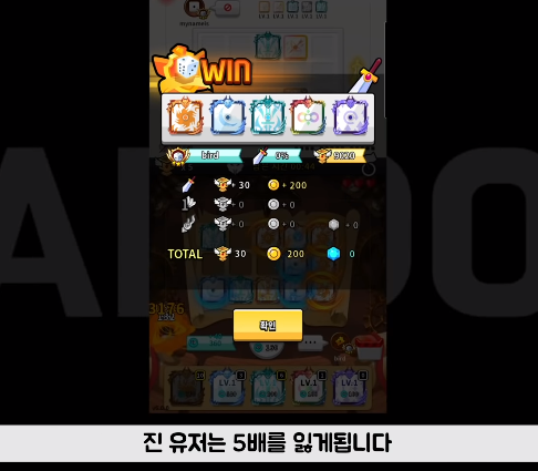 자신과 상대방중 낮은 베팅이 채택되는데요, 예를 들어 본인은 2장, 상대는 3장을 베팅한 경우 2장으로 베팅이 되고 해당 경기에서 승리시 트로피 5배를 얻게 되고 패배하는 경우 5배를 잃게 됩니다.