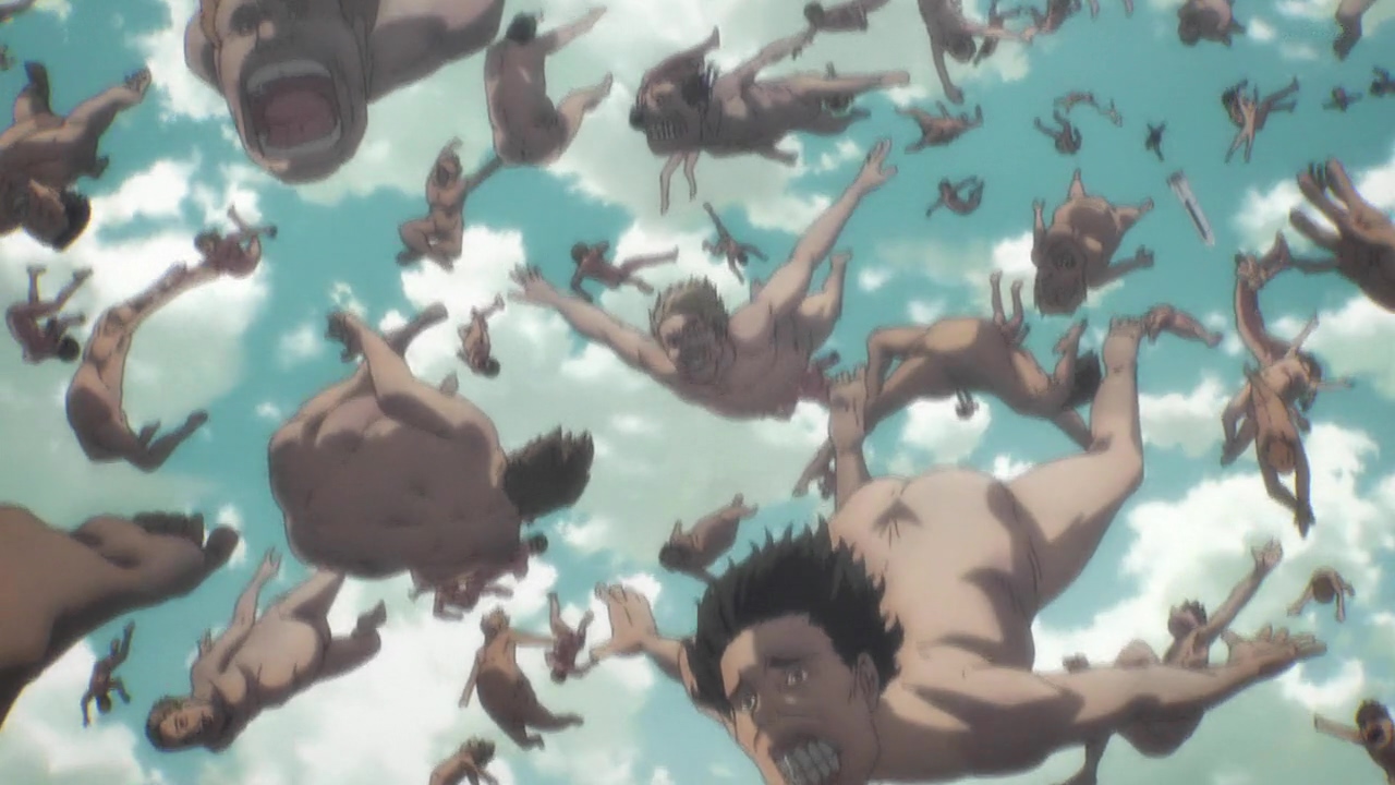 처음 1화를 볼때 그 긴장감은 말로 표현할 수 없었습니다. 1화에서부터 초대형 거인이 벽을 부수고, 그 벽으로 다른 거인들이 침입하여 수 많은 사람들을 잡아먹고 죽이고 하는 모습은 살짝 잔인하기까지 했었습니다. 그러나 가장 기억에 남는 것은 위에서도 말했다시피 주인공의 엄마가 잡아먹히는 장면이었죠. 해당 연출이 굉장히 뇌리에 박혔고 그러면서 본격적으로 진격의 거인에 흥미를 갖게 된 계기가 되었다 생각합니다.
