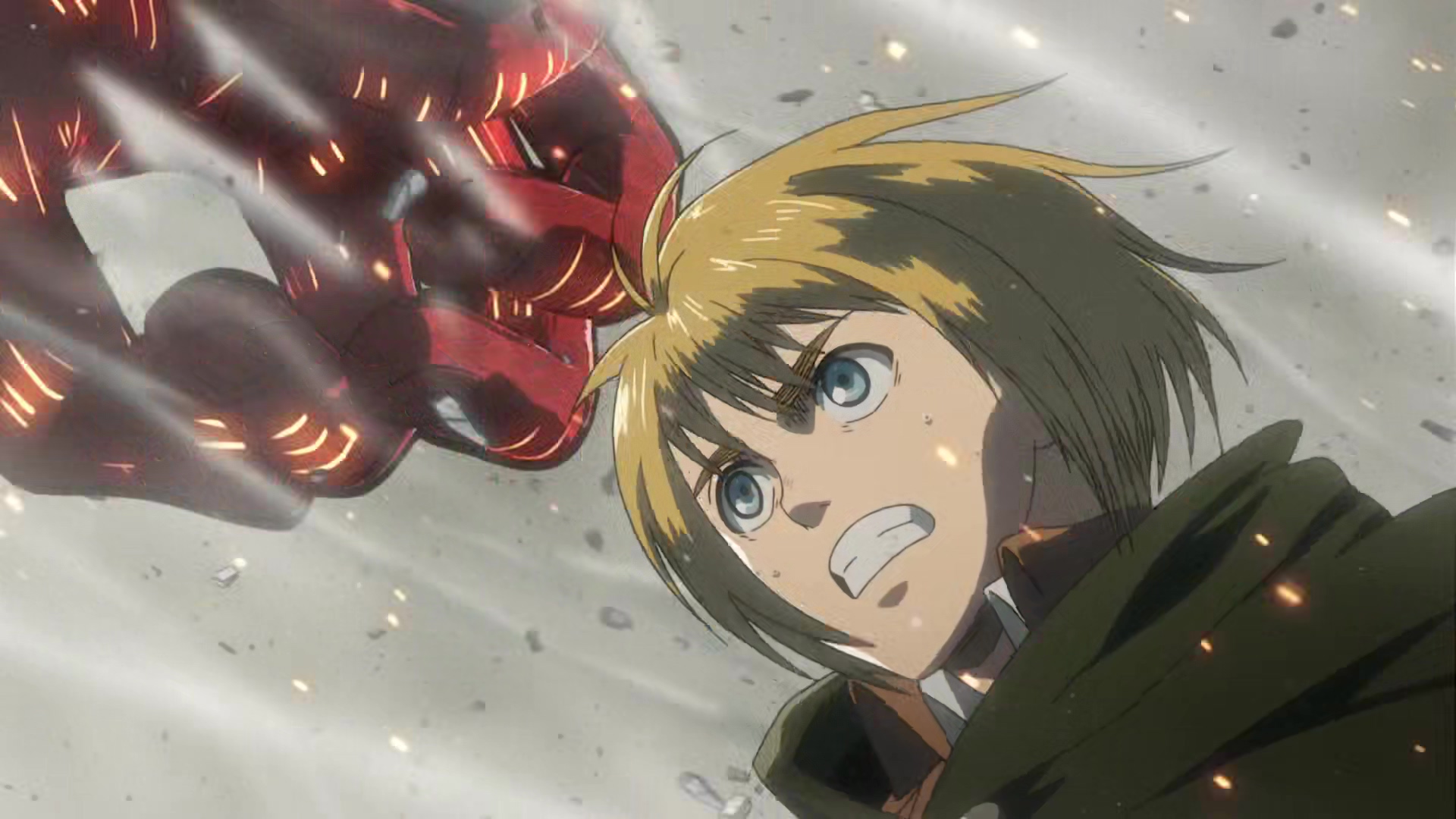 이후에는 인간들이 한번 거인화했던 에렌을 인류의 적으로 봐야되나, 아군으로 봐야하나에 대해서 다투는데 그곳에서 아르민은 에렌을 감싸주며 그의 전술가치를 이용하면 뚫렸던 벽도 복구할 수 있다는 식으로 말하고, 결국 아르민의 말대로 에렌은 거인화를 이용해 거대한 돌덩이로 벽 구멍을 매워서 작전에 성공합니다. 이를 두고 인간 vs 거인의 대전중의 인간의 첫 번째 승리라며 기뻐하죠.