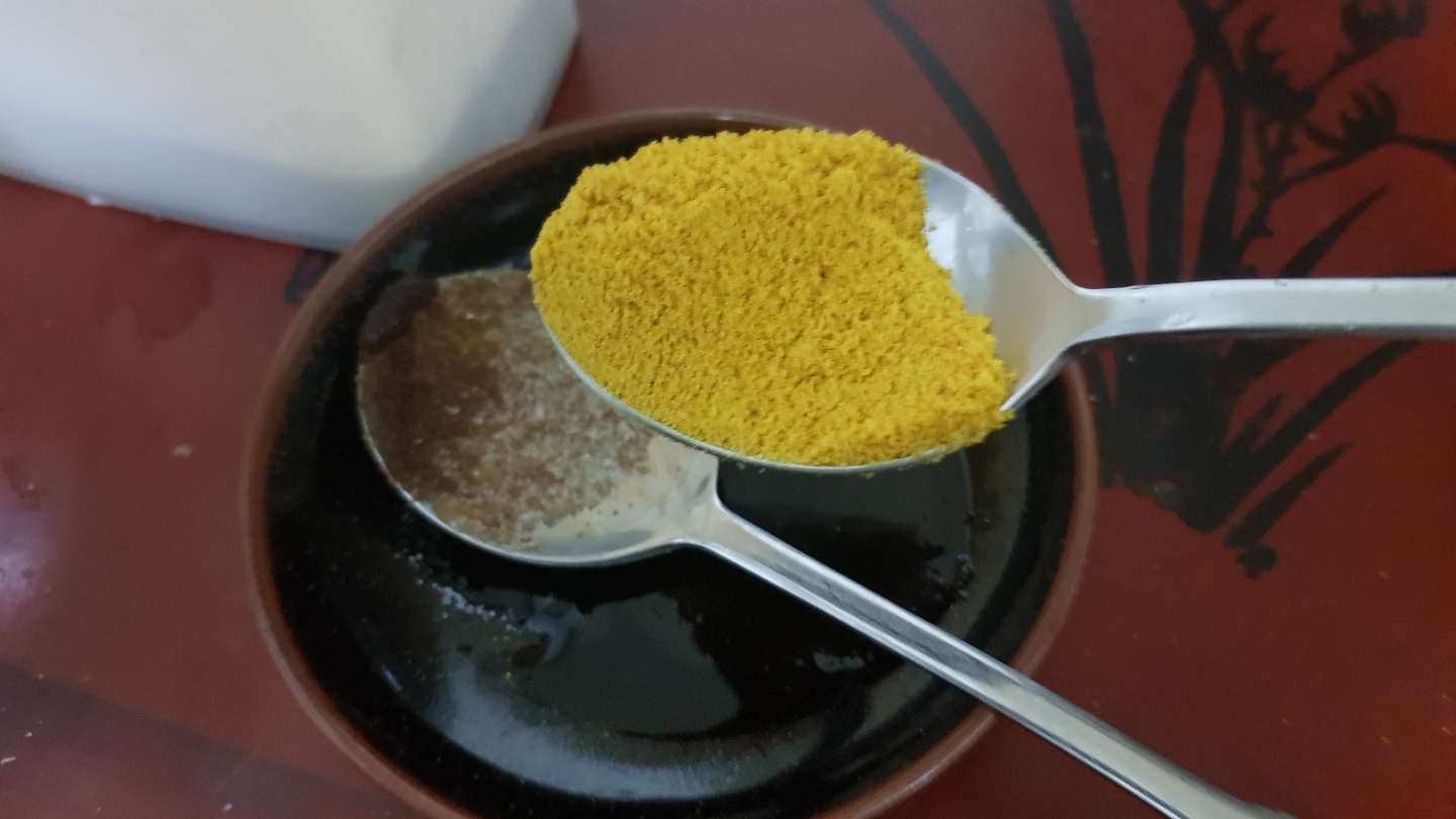 또 저는 카레가루를 한스푼 넣어줬는데요, 밥 구이에서 카레맛이 나기를 바랬습니다. 여튼 재료를 다 넣고 적당히 섞어줬는데 잘 안섞여서 뜨거운 물 한두스푼을 넣고 섞었습니다.