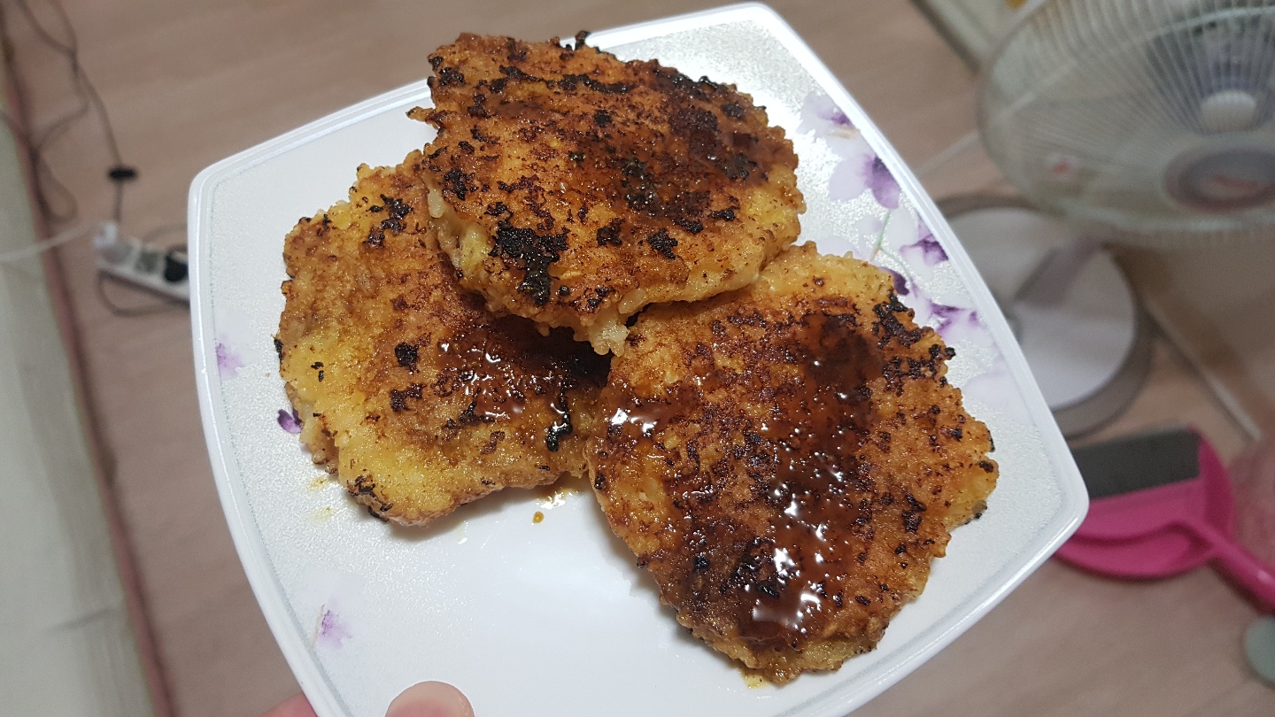 제가 만든 밥 구이는 분명 실험적 요리였습니다. 솔직히 소스 없이 밥, 계란에 참치나 스팸, 당근, 파프리카 등의 재료를 잘게 썰어서 넣었어도 맛있을 것 같다는 생각입니다. 다만 당장 재료가 없었기도 하고, 채소같은 경우 잘게 썰어야 되서 귀찮기도 하잖아요? 아쉬운 점은 구워지고 있는 밥 구이에 소스를 넣었을 때부터 금방 타기 시작했다는 것입니다. 먹으면서 차라리 다 구운 후 소스를 나중에 바르는 형식으로 했으면 어떤가 싶기도 하네요.