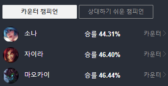 op.gg 카운터 챔피언은 이렇게 나와있는데 이런 애들보다 그랩류 챔피언(블리츠, 노틸러스, 쓰레쉬, 파이크)같은 챔피언들이 더 카운터입니다. 세나는 일단 물몸이기 때문에 원딜이든 세나든 한번 끌리는 경우 딜교를 지는 것 뿐만 아니라 킬을 내어줄 수도 있기 때문이죠.