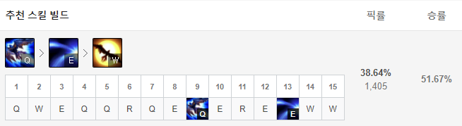 칼바람 퀸은 처음에 Q, W, E 스킬을 하나씩 찍어주고 그 이후에는 R-Q-E-W 순서로 스킬을 마스터해주시면 됩니다. 초반에는 그냥 평타 및 Q로 견제를 하고 적이 돌진해오면 돌진해온 적을 E스킬로 밀쳐내고 딜을 넣는 식으로 운용하면 되죠. 또 부쉬 안에 적이 숨어있는지 확인하고 싶을 때는 W를 써서 밝혀주시면 되구요, 또 적들 체력이 딸피라면 궁극기를 통해 빠르게 달려가서 마무리를 해주시면 되겠습니다.
