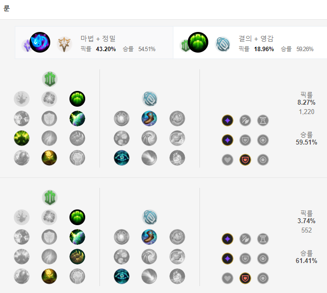 소나&럭스 조합이라면 대천사의 지팡이, 리치 베인, 아테나의 부정한 성배 순서로 템트리를 올려 초반부에는 딜링을, 후반부에는 서포팅을 하는 형식으로 가면 되겠습니다.