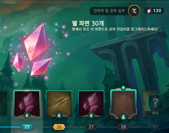 먼저 롤토체스를 플레이하다보면 이렇게 별 파편이 있는 것을 확인할 수 있을겁니다. 주로 하나한 클리어해가는 보상에서 패스권을 이용해 플레이하는 경우 보상으로 더 많은 별 파편을 받을 수 있죠.
